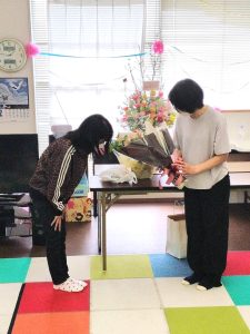 今月退職予定の職員へ会社からはもちろん、ご家族様からも花束を頂き、お別れ会を行いました😢