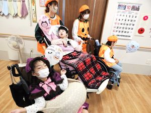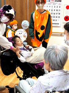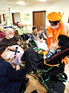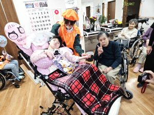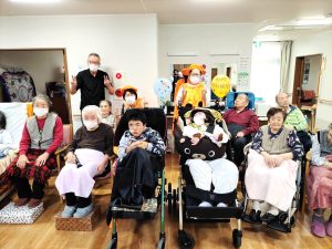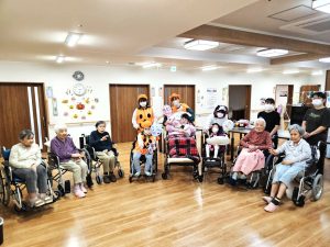 思い思いの衣装に身を包み、今年も「特別養護老人ホーム 花いちもんめ」さんへ