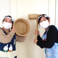 11月の制作では花紙をくしゃくしゃして制作をしましたが、今回は手触りが少―し硬い新聞紙を使った活動です💡 前半は、“新聞紙に慣れよう”ということで、新聞紙をちぎったり、丸めたりして遊びました☺ …