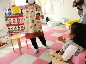 最初にひなまつりの説明をした後に、『うれしいひなまつり』のお歌に合わせて、