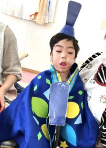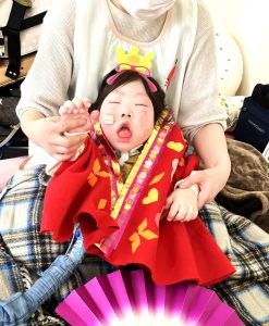 パネルシアターを見た後には…、女の子はお雛様、男の子はお内裏様の衣装を着て、パシャリ📸✨