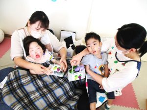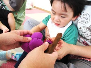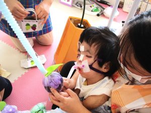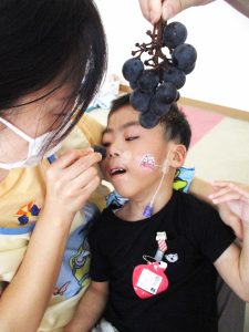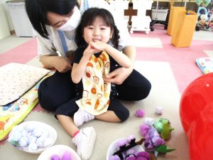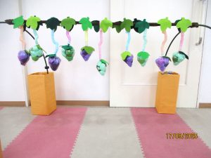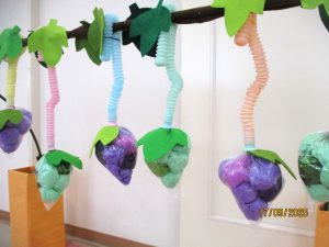 毛糸、ネット、フェルト、不織布のぶどうをたくさん触りました(^O^)