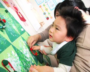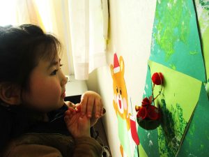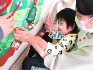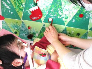 色々な素材のオーナメントを用意したので飾る前にみんな音を鳴らしてみたりフワフワな素材を感じてみたりして楽しみました☆