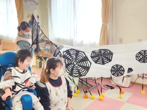 放デイの職員さんにびっくり箱やクモの巣のイタズラもしたよ🍀