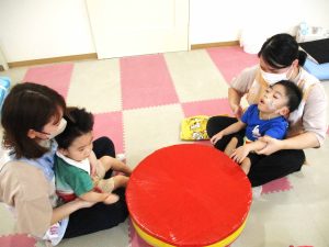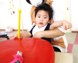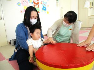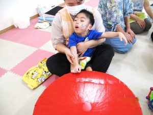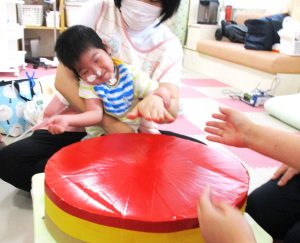 大きな太鼓が登場~!大きな太鼓でリズムあそびといったら、もちろん曲は『おおきなたいこ』ですね!
