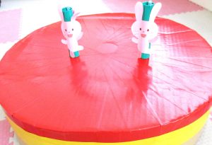 すると、うさぎさんがやってきましたよ~。太鼓を叩くとうさぎさんが踊ります。