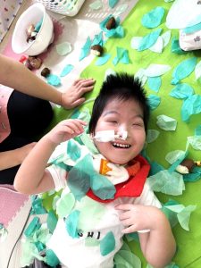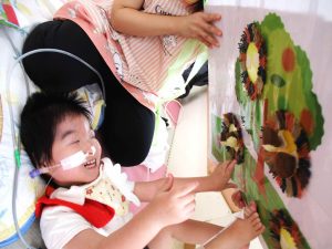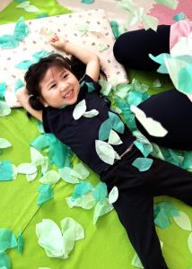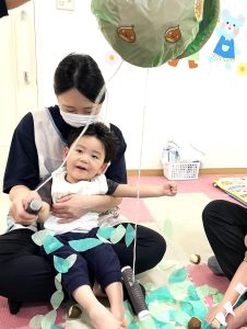 つなぐでは、くす玉風「栗の木」をみんなでフリフリ揺らして遊びました♪♪