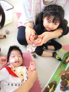 お友だちに渡し合いっこもしたよ♪「どうぞ」☺