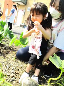 シャボン玉をしたり、つなぐ内で作っているお野菜を観察したり♫