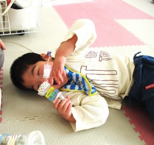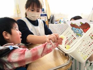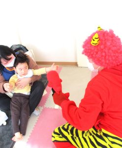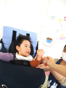 前半の活動では「節分ってなーに?」ということで「節分のお話」をしたり、鬼さんの嫌いな豆に触れたりして遊びました♪