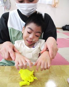 まずは、子どもたちは粘土に慣れるところから始めました。みんな思い思いに好きな作品を作っていましたよ♪