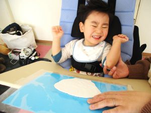 だんだん慣れてくると、両手で持ち上げたり集めて丸めたりとたくさん触れてあそぶことができました。